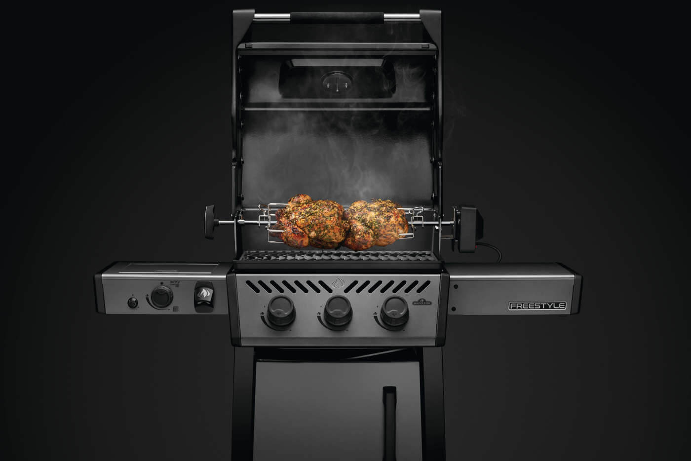 Der Propangasgrill Freestyle™ 365 ist ein Kompaktgrill mit erstklassigen Funktionen und unschlagbarem Preis-Leistungsverhältnis. Mit dem Flammenstrahl des JETFIRE Zündsystems wird Ihr Grill schnell, einfach und zuverlässig angezündet. Die porzellanemaillierten Grillroste aus Gusseisen ermöglichen ein perfektes Anbraten. Die drei Edelstahlbrenner ermöglichen eine gleichmäßige Verteilung der Hitze, die über das integrierte Themometer einfach gesteuert und kontrolliert werden kann. Grillen Sie Ihr Steak wie ein Profi an oder bereiten Sie Ihre Beilagen auf dem SIZZLE ZONE™ Infrarot Seitenbrenner zu. Mit den robusten Rollen können Sie Ihren Grill an jeden gewünschten Ort schieben. Dank einer abklappbaren Seitenablage mit Haken für Grillbesteck und einem Flaschenöffner passt sich der Freestyle™ ganz an Ihren Lebensstil und Ihr Platzangebot an.