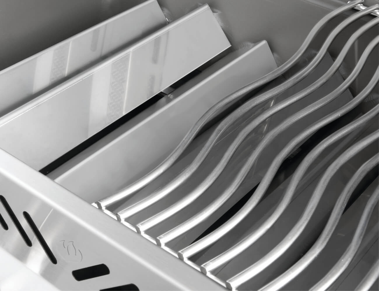 - Integrierter Grill: Der Prestige® 500-Einbau-Gasgrill-Aufsatz verfügt über vier Edelstahl-Hauptbrenner mit 21,7 kW und einen Infrarot-Heckbrenner mit einer Gesamtgrillfläche von 4.654 cm² (71 cm x 46 cm + Warmhalterost), ein JETFIRE™-Zündsystem sowie einen Infrarot-Seitenbrenner (BIB10) samt Abdeckungen für Grill und Seitenbrenner.