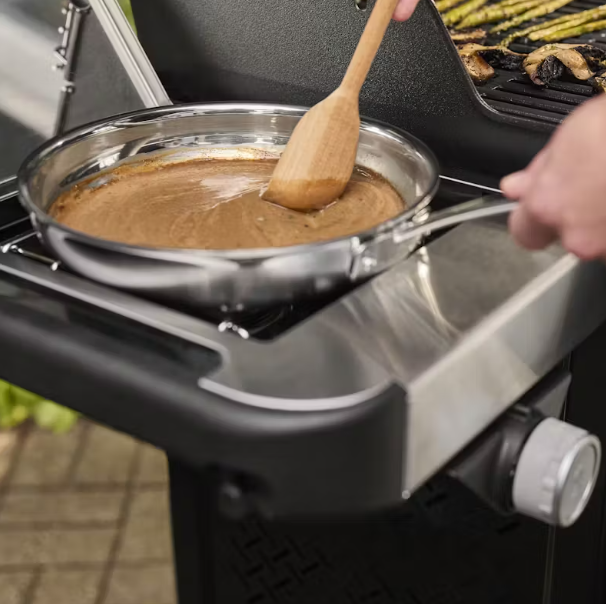 Mit dem neuen Spirit® SP-435 Gasgrill aus Edelstahl mit 4 Brennern, Sear Zone und Seitenbrenner schmeckt dein Grillgut noch besser. Erzeuge kräftige, aromatische Grillmuster auf Fleisch, Fisch und Gemüse mit zwei Boost-Brennern, die bis zu 40 % mehr Leistung in der Sear Zone freisetzen. Mit der Snap-Jet-Zündung kannst du jeden einzelnen Brenner mit einer Hand zünden und die Hitze in einem sehr großen Temperaturbereich präzise steuern. Auf dem digitalen Thermometer kannst du zu jeder Tageszeit die Gartemperatur gut ablesen. Für eine optimale Platzausnutzung kannst du das vielseitige Weber Works Drop-in-Zubehör (separat erhältlich) zum Einsetzen in den Seitentisch und das Snap-On-Zubehör (separat erhältlich) zum Einhängen an den Seitenschienen ergänzen. Verwandle deinen Grill in einen Dutch Oven, einen Geflügelhalter und vieles mehr mit den enthaltenen Weber Crafted® Grillrosten, in die weiteres Gourmet BBQ System Grillzubehör passt (separat erhältlich).
