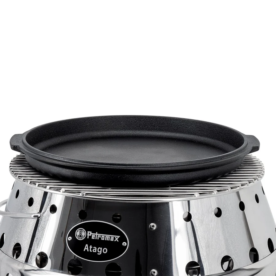 Dank seasoned finish ist er sofort einsatzbereit und entwickelt eine immer stärkere, natürliche Antihaftwirkung. Der multifunktionale Deckel verwandelt sich im Handumdrehen in eine vollwertige Bratpfanne, die ideal auf dem Grillrost oder im Feuer verwendet werden kann.