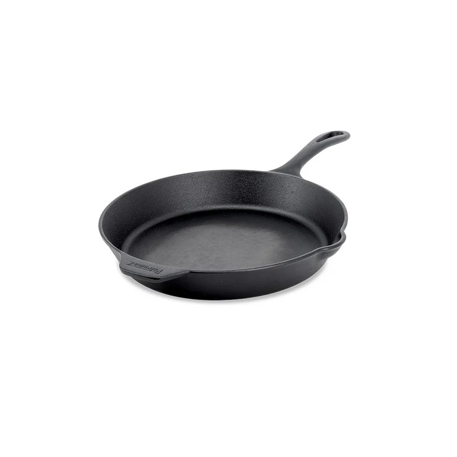 Die Feuerpfanne aus der Essential Line verbindet reduziertes Gewicht mit der vollen Stärke von Gusseisen: Sie speichert Wärme zuverlässig, brät gleichmäßig und ist dank seasoned finish sofort einsatzbereit. Der praktische seitliche Ausguss und der Stielgriff sorgen für präzises Handling – ob beim Schwenken, Portionieren oder direkten Servieren.
