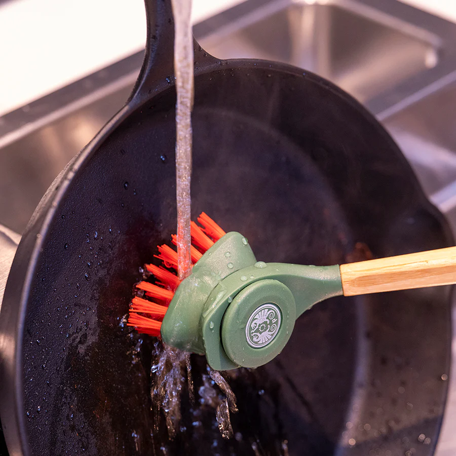 Beide Bürstenköpfe lassen sich vom Griff entfernen und sind besonders leicht zu reinigen. Dank kompakter Bauweise kannst du das Set sogar im Dutch Oven ab Größe ft6 transportieren – ideal für Küche, Camping und Outdoor-Abenteuer.