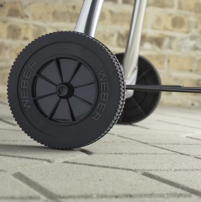 Dank der bruch- und wetterfesten Räder können Sie den Weber Compact Kettle mühelos zum gewünschten Einsatzort bringen. Während des Grillvorgangs sorgt das robuste Standbein für einen festen Stand. Zwischen den Rädern und dem Standbein befindet sich ein praktisches Bodengitter.