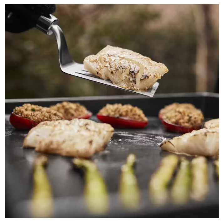 Optimiere das Grillen unterwegs mit der Weber® SLATE GP 56 cm Premium Plancha mit Dual Zone Hitze zum gleichzeitigen Grillen bei zwei Temperaturen. Die Grillfläche erreicht über 260 °C und sorgt für eine gleichmäßige Hitze, sodass dein Grillgut überall auf der Plancha einheitlich gegart wird. Die porzellanemaillierte Antihaft-Grillfläche ist sofort einsatzbereit, so dass du saftige Burger, aromatische Pfannengerichte, lecker angebratene Meeresfrüchte, Gemüse und vieles mehr zubereiten kannst. Dank der verstellbaren Füße, mit denen du die Plancha auf unebenen Untergründen ausrichten kannst, zusammen mit der Möglichkeit einen klappbares Grilltisch hinzuzufügen, ist die Weber® SLATE Premium Plancha der perfekte Grill für Picknicks, den Garten oder zum Aufstellen auf einem Tisch.