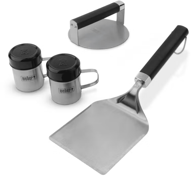 • Das Set enthält: Smashed-Burger-Presse, breiter Grillwender und zwei Gewürzstreuer