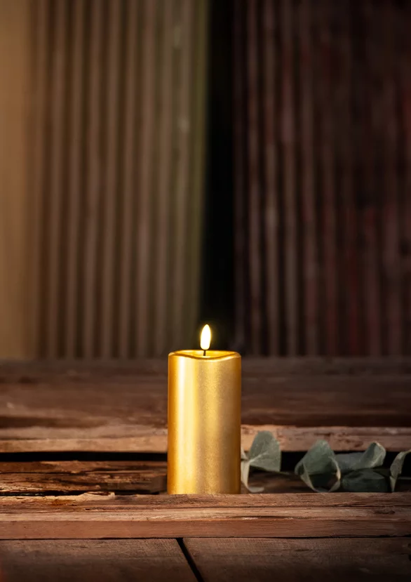 Schlaraffenland 3D LED Kerze NOVITA Gold, 7,5 x 10 cm, Echtwachs, 11846