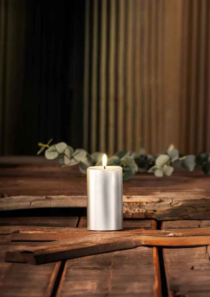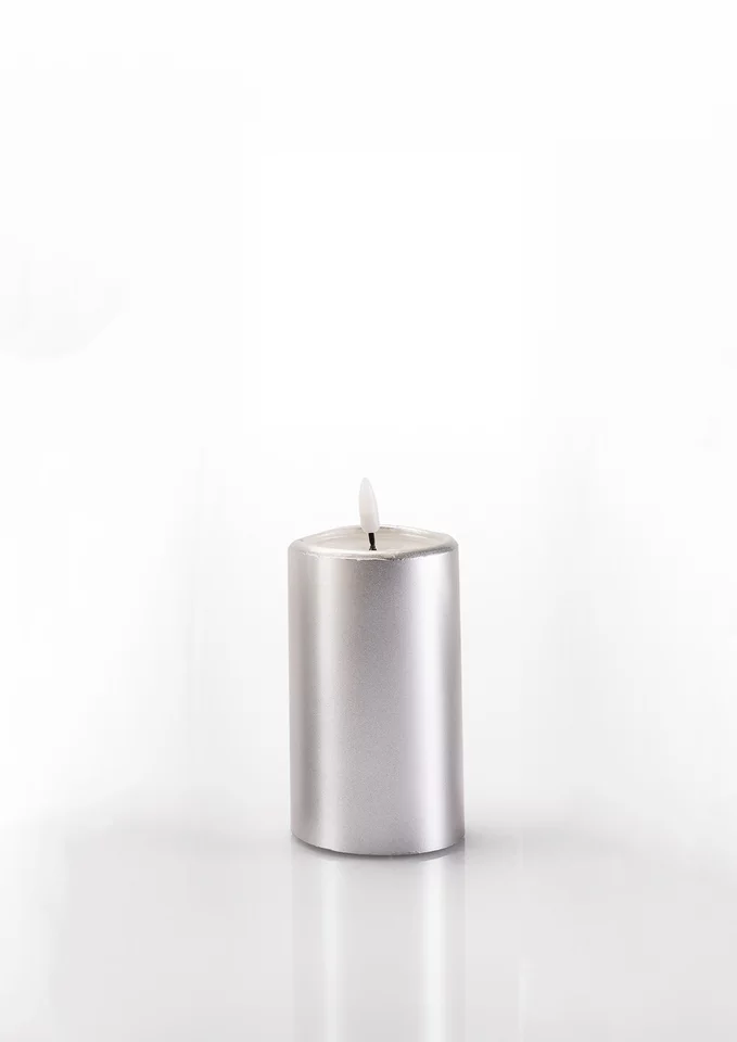 Schlaraffenland 3D LED Kerze NOVITA silber, D7,5 H12,5 cm, Echtwachs, 11844