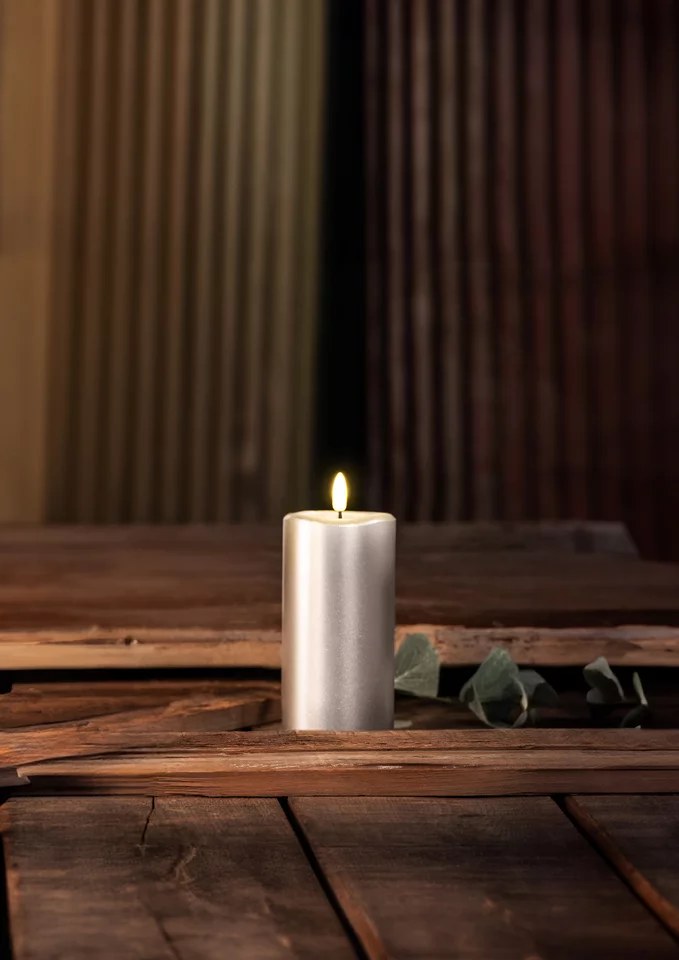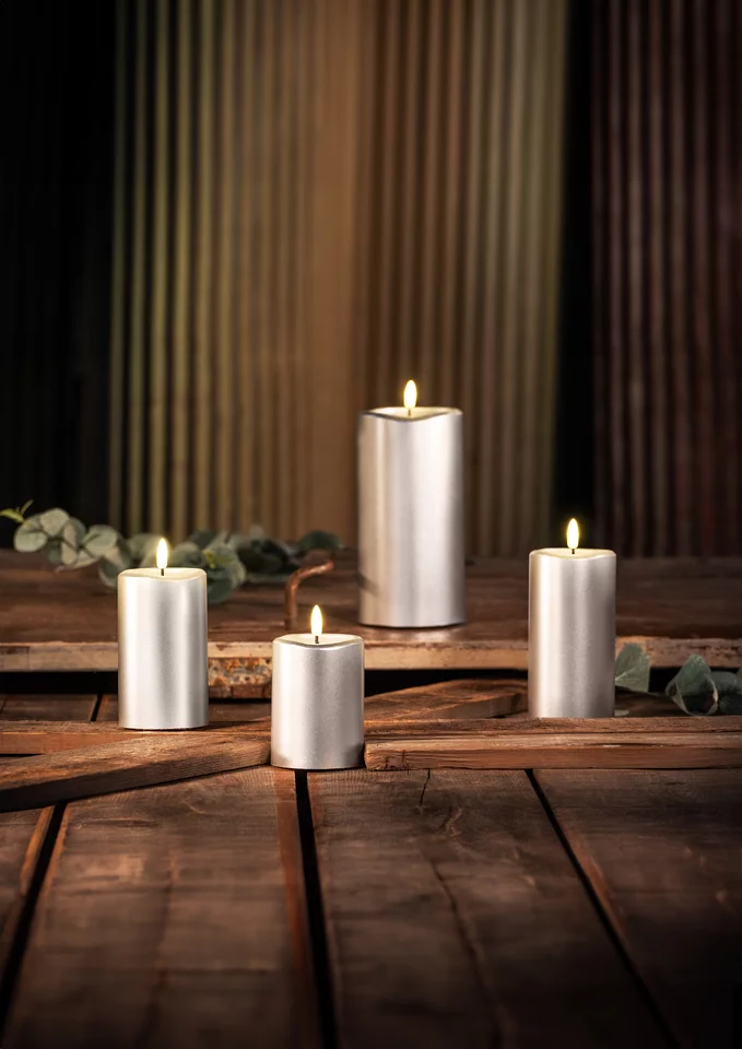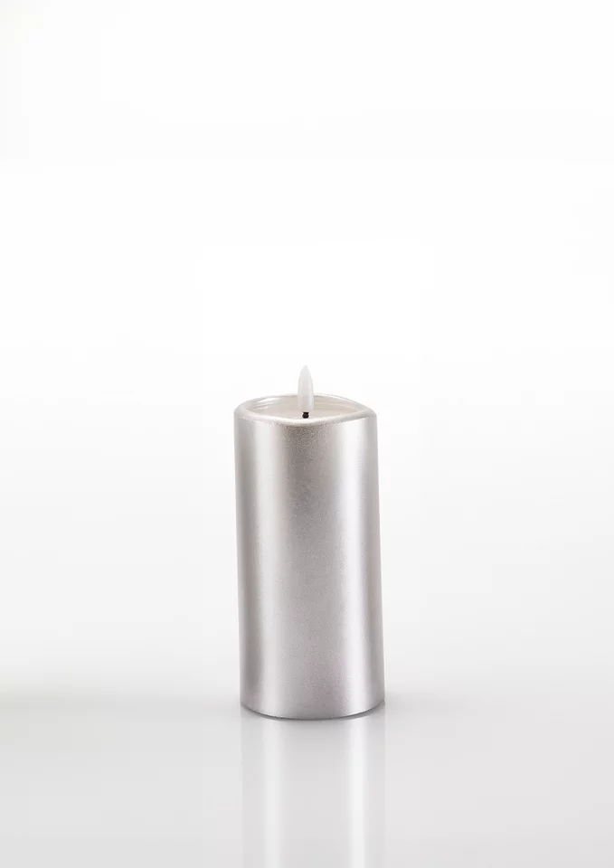 Schlaraffenland 3D LED Kerze NOVITA silber, D7,5 H15 cm, Echtwachs, 11845