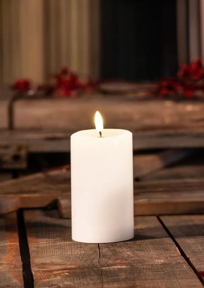 Schlaraffenland 3D LED Kerze NOVITA weiß, D7,5 H12,5 cm, Echtwachs, 11829