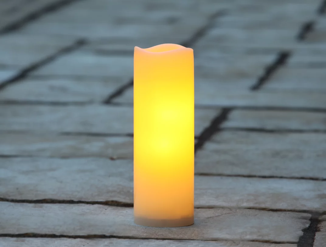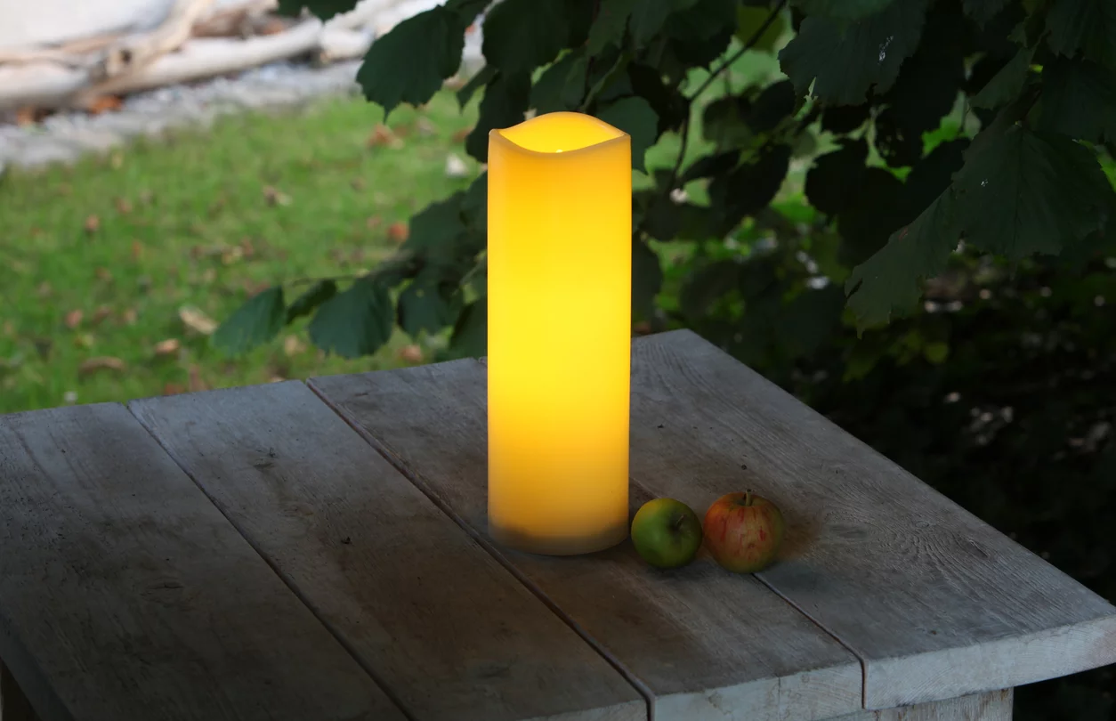 Outdoor Kerze aus Kunststoff, spritzwassergeschützt und witterungsbeständig