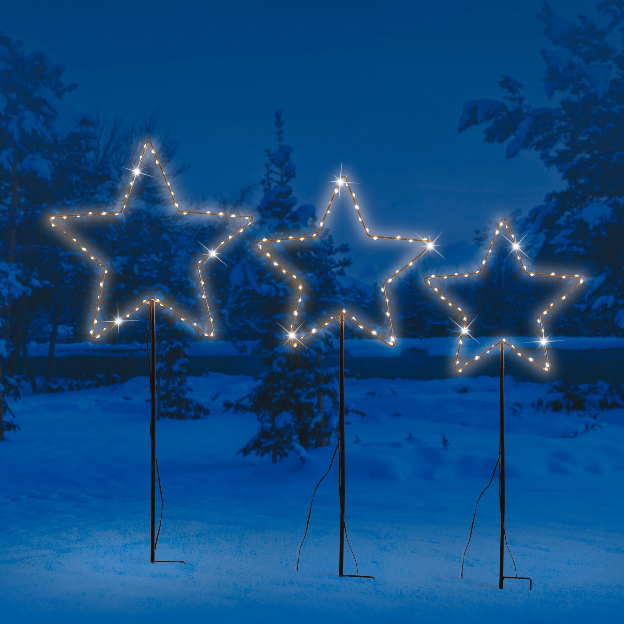 Dekoleuchte, LED Metallstecker Sterne 3er Set
