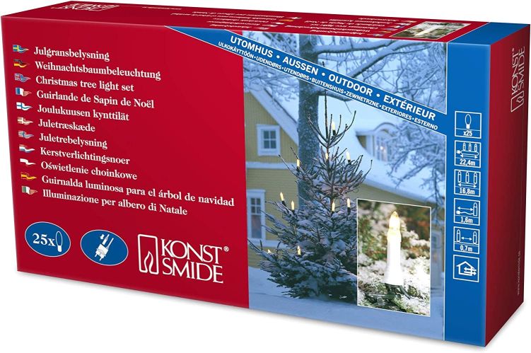 Dank eines teilbaren Steckers, lässt sich die Baumkette kinderleicht an jedem Weihnachtsbaum anbringen. Mit der Schutzklasse IP44, kann diese Baumkette sowohl drinnen als auch draußen für eine schöne Atmosphäre sorgen. Mit 25 klar leuchtenden Topbirnen, erstrahlt jeder Weihnachtsbaum in einem schönen Glanz.