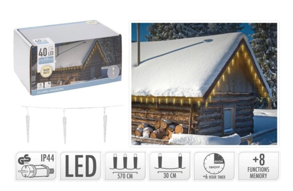 Koopman Eiszapfen Lichterkette 40 LEDs, 5.7 m, warmweiß, AX8103080