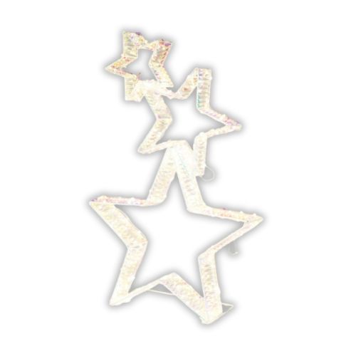 Drei ineinander verschachtelte Sterne, elegant gestapelt und mit funkelnden LEDs beleuchtet – diese 80 cm hohe Dekoration bringt winterlichen Zauber in jeden Raum oder Garten.