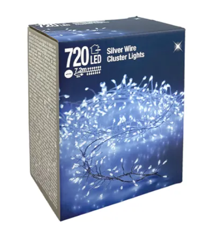 Dieses Cluster-Lichtkabel besteht aus mehreren silbernen Drähten, die Sie nach Ihren Wünschen miteinander verflechten können. An den flexiblen Silberdrähten sind kleine weiße LEDs befestigt. Kann sowohl drinnen als auch draußen verwendet werden.