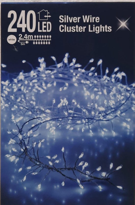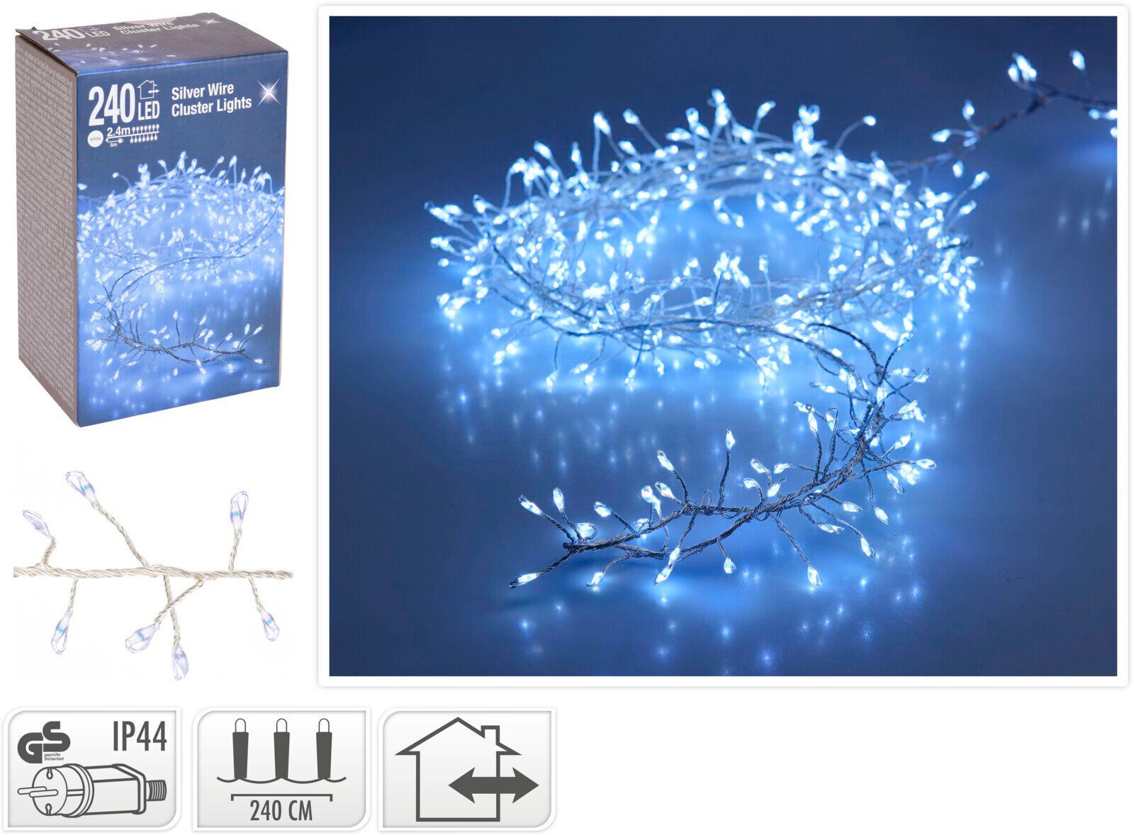 Eine Lichterkette mit 240 LED-Lichtern, Silberdraht-Clusterlicht. 500 cm Kabel, 240 cm Lichter