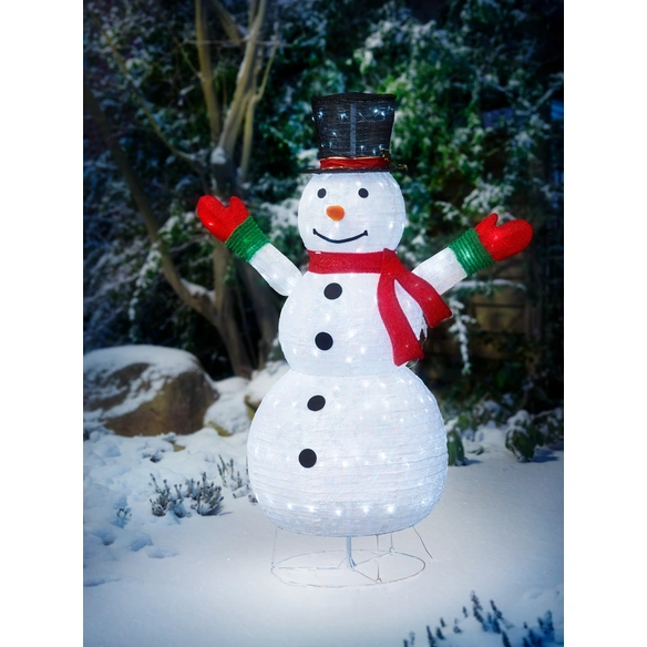 Diese beeindruckende Schneemann-Dekofigur von IC Winterworld ist ein wahrer Blickfang für deine Weihnachtsdekoration. Mit einer Höhe von etwa 180 cm und einer bunten Gestaltung zieht sie alle Blicke auf sich. Der Schneemann ist mit einer LED-Lichterkette ausgestattet, die 180 stetig leuchtende und 20 blinkende LEDs umfasst, und sorgt so für eine festliche Atmosphäre. Dank des robusten Metallgerüsts und des Stoffüberzugs ist die Figur sowohl tagsüber als auch bei Nacht ein Highlight. Sie eignet sich hervorragend für die Dekoration im Außenbereich, beispielsweise im Garten oder vor dem Haus.