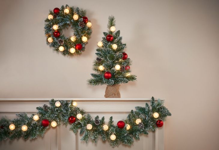 - Natürliche Optik: Der Kranz besteht aus 88 Tips (Nadeln) und bietet eine volle, realistische Optik. Das frostige Grün mit roten Akzenten sorgt für eine winterliche Atmosphäre.