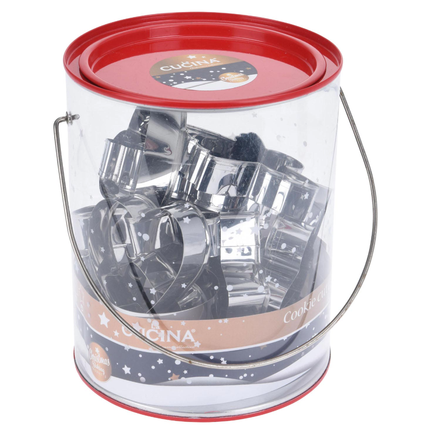 Backen Sie köstliche Weihnachtsplätzchen mit diesem 16-teiligen Ausstecherset mit Weihnachtsmotiv.