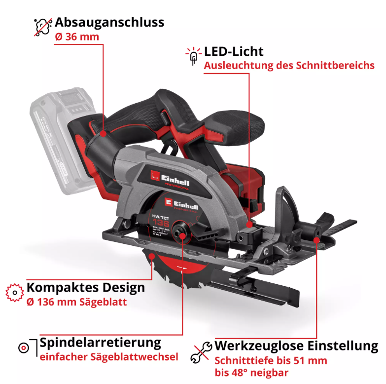 - Inkl. 1x HW/TCT Sägeblatt Ø 136 mm