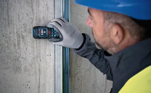 Der GLM 50-22 Professional hält rauen Bedingungen auf Baustellen stand. Sein IP65-Design bietet vollständigen Schutz vor Staubteilchen und Strahlwasser, während sein stoßabsorbierendes Gehäuse sogar Stürzen aus 1,5 m Höhe auf harten Beton standhält. Mit einer Taste für individuelle Anpassungen können bevorzugte Messfunktionen und Einstellungen festgelegt werden. Sein intuitives User Interface unterstützt 30 Sprachen und bietet ein Farbdisplay; der Modus Große Zahlen sorgt für eine bessere Ablesbarkeit. Für eine selbsterklärende Anwendung verfügt er über eine neue Hilfsfunktion, die sämtliche Messoptionen anzeigt.
