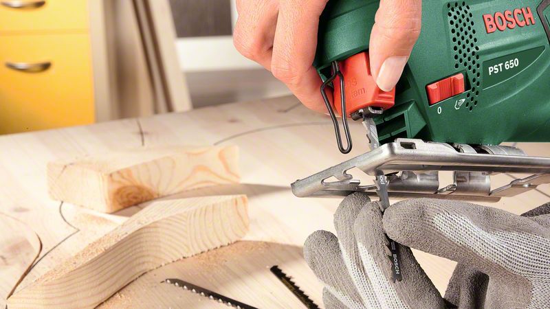 Stichsäge PST 650. Leicht und kompakt für bequemes Arbeiten. Geringes Gewicht und kompakte Größe für leichte Handhabung. Minimale Vibrationen sorgen für Kontrolle und Komfort beim Sägen. Schnitttiefen von bis zu 65 mm in verschiedenen Materialien. SDS ermöglicht einen schnellen und einfachen werkzeuglosen Sägeblattwechsel für effizientes Arbeiten. 1 Stichsägeblatt für Holz (T 144 D), Kunststoffkoffer.