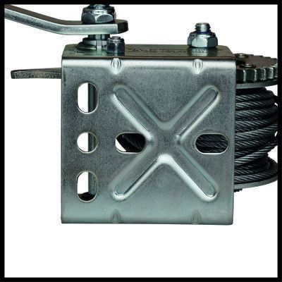 Die Handseilwinde aus dem Hause Einhell verfügt über ein 10 Meter langes, drallfreies Drahtseil (Ø 4,2 mm) mit einem Sicherheitslasthaken und einer Sicherungsklappe. Die Sicherungsklappe verhindert ein ungewolltes Aushängen der Last.