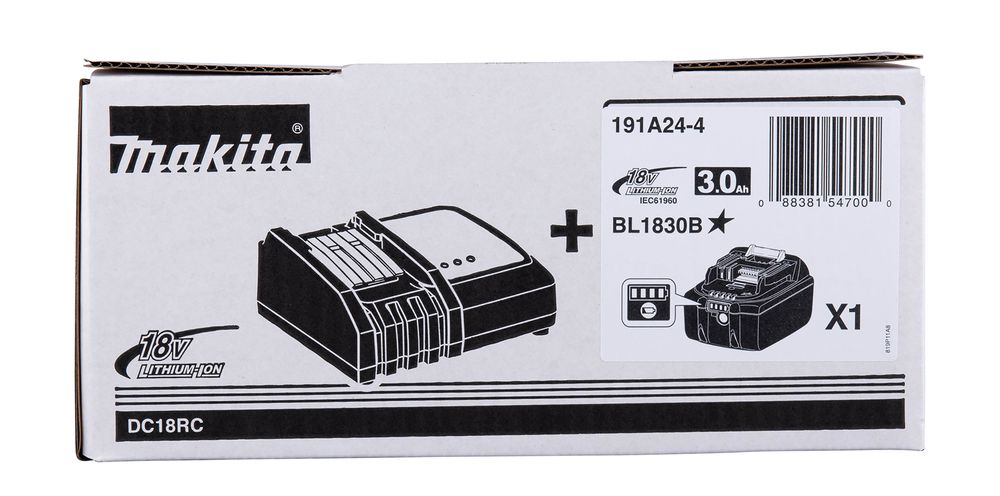 Es kombiniert einen leistungsstarken 3,0 Ah Li-Ion-Akku (BL1830B) mit einem Schnellladegerät (DC18RC) und sorgt so für zuverlässige Stromversorgung und kurze Ladezeiten bei deinen Akku-Werkzeugen.