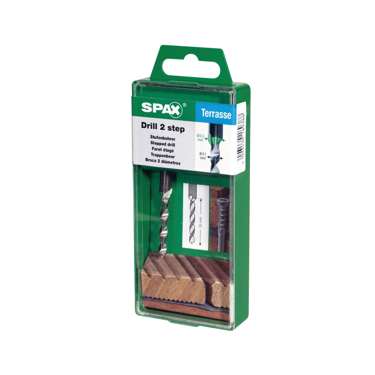 Mit 2 Bohrstufen von ø 4,1 mm und ø 6,5 mm, für ein sauberes Schraubbild. Speziell für die Verarbeitung von SPAX Terrassenschrauben. Ideal für den Terrassenbau.