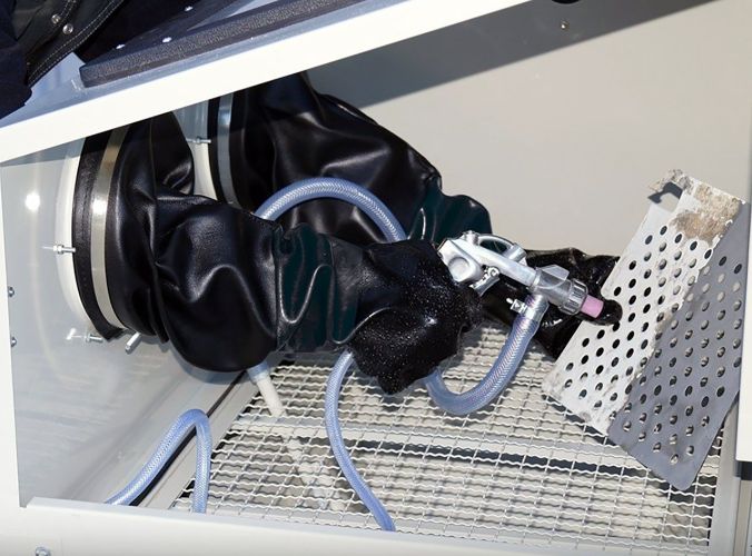 - Die Sandstrahlkabine bietet eine Tischkapazität von 20 kg und ermöglicht so die Bearbeitung einer Vielzahl kleiner und mittelgroßer Teile.